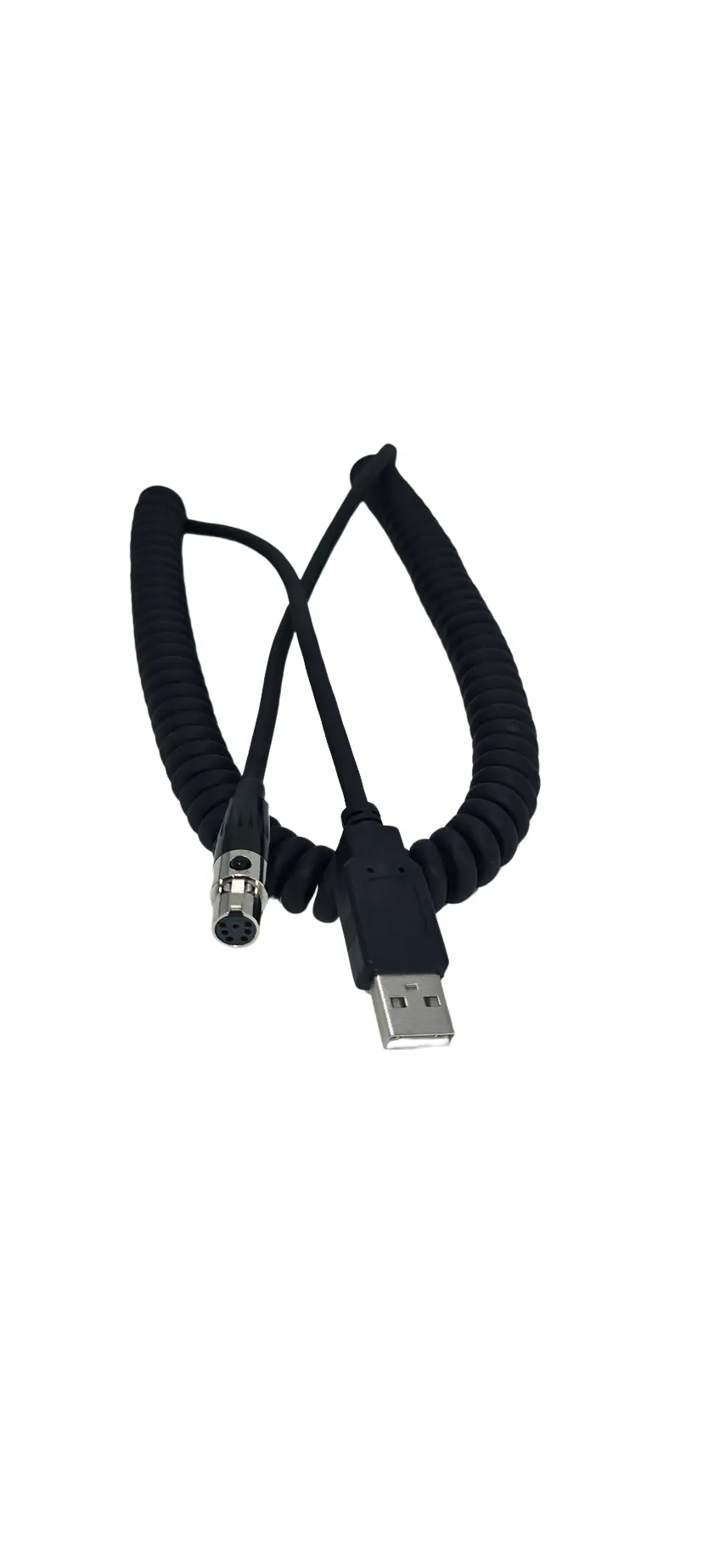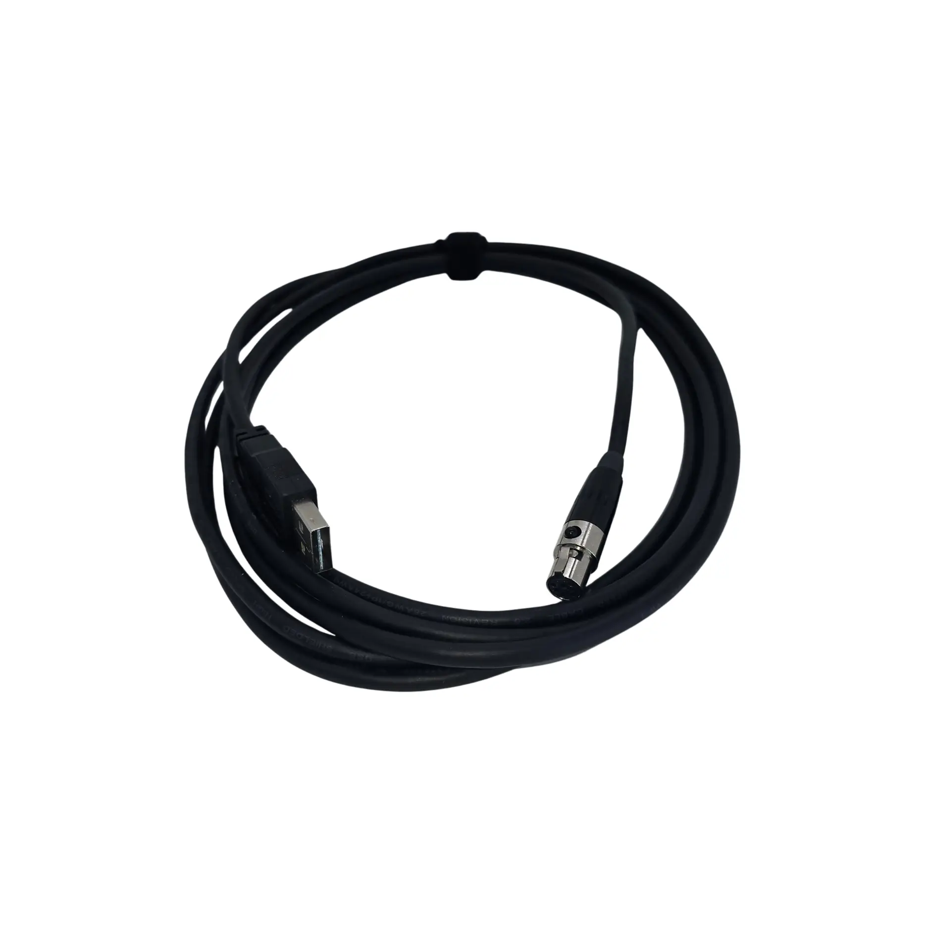 This cable has a USB-A plug on one end and a mini XLR female plug on the other end. Plug one end into a charging source like the one in the wireless kit, a laptop or a wall charger. Plug the other end into a Dalcomm wireless series device. It’s used to charge: