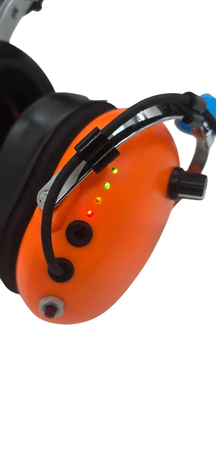 - Group ID – We’ve added a rubber ring to the place where the headband attaches to the ear cup. There are 7 colors available. If you put three rings on a headset you get 343 possible different work groups, arranged by mixing the colored rings.